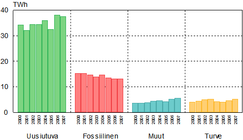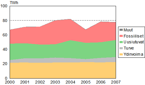 Viime vuodet ovat olleet keskimääräistä lämpimämpiä, ja vuonna 2007 lämmitysenergian tarve pysyi edellisvuoden tasolla. Teollisuuden käyttämä lämmön määrä pysyi myös viime vuoden tasolla. Sekä kaukolämmön että teollisuuslämmön tuotannossa yhteistuotannossa tuotetun lämmön määrä väheni, eli lämmön erillistuotannon määrä nousi.