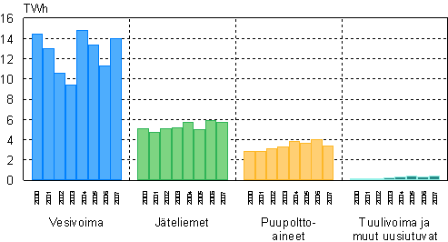 Kuvio 06. Uusiutuvilla energialähteillä tuotettu sähkö 2000-2007
