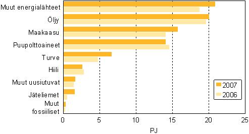 Kuvio 15. Polttoaineiden käyttö lämmön erillistuotannossa 2006-2007