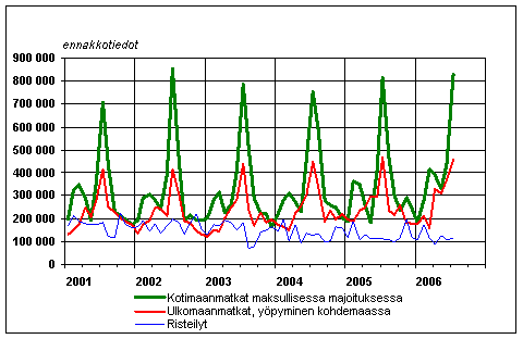 Suomalaisten vapaa-ajanmatkat kuukausittain 2001-2006, ennakkotiedot