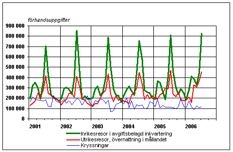 Finländarnas fritidsresor per månad 2001-2006, förhandsuppgifter