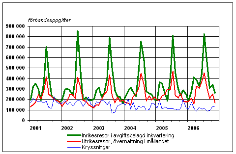Finländarnas fritidsresor per månad 2001-2006, förhandsuppgifter