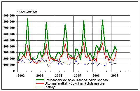 Suomalaisten vapaa-ajanmatkat kuukausittain 2002-2007, ennakkotiedot