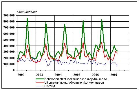 Suomalaisten vapaa-ajanmatkat kuukausittain 2002-2007, ennakkotiedot
