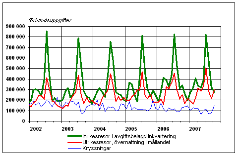 Finländarnas fritidsresor per månad 2002-2007, förhandsuppgifter