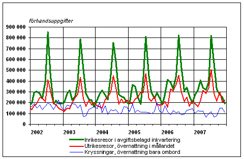 Finländarnas fritidsresor per månad 2002-2007, förhandsuppgifter