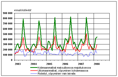 Suomalaisten vapaa-ajanmatkat kuukausittain 2003-2008, ennakkotiedot