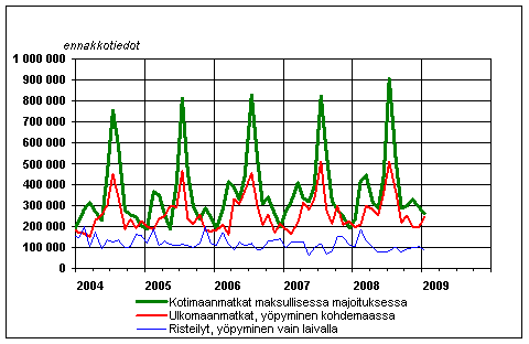 Suomalaisten vapaa-ajanmatkat kuukausittain 2004-2009, ennakkotiedot