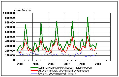 Suomalaisten vapaa-ajanmatkat kuukausittain 2004-2009, ennakkotiedot