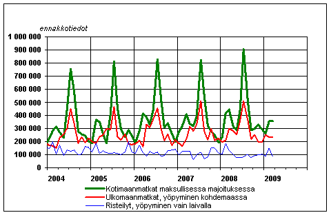 Suomalaisten vapaa-ajanmatkat kuukausittain 2004-2009, ennakkotiedot