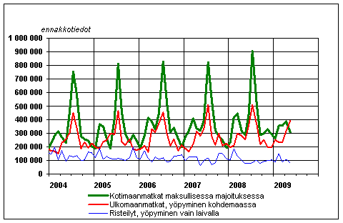 Suomalaisten vapaa-ajanmatkat kuukausittain 2004-2009, ennakkotiedot