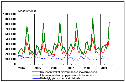 Suomalaisten vapaa-ajanmatkat kuukausittain 2004-2009, ennakkotiedot
