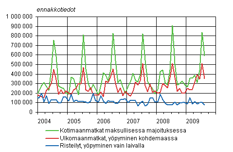 Suomalaisten vapaa-ajanmatkat kuukausittain 2004-2009, ennakkotiedot