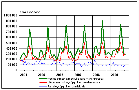 Suomalaisten vapaa-ajanmatkat kuukausittain 2004-2009, ennakkotiedot