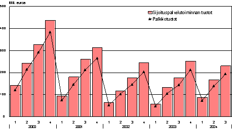 Sijoituspalvelutoiminnan tuotot tammi.-syyskuulta olivat kaikkiaan 230 milj.euroa. Samalta kaudelta sijoituspalveluyritykset kirjasivat nettovoittoa 49 milj.euroa, joka on 26 milj.euroa edellisen vuoden vastaavaa ajankohtaa runsaammin. Nettovoitoista kohdentui 10 milj.euroa ajalle heinä-syyskuu 2004.