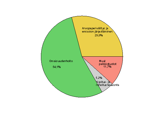 Sijoituspalveluyritysten palkkiotuotot tuottotyypeittäin 1.1.- 31.12.2004, %