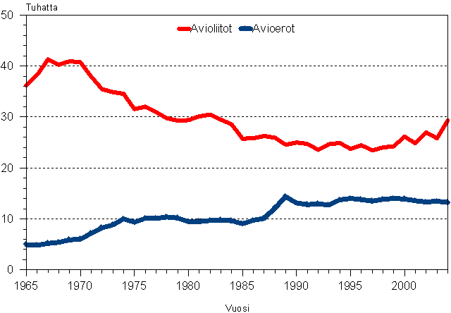 Tilastokeskuksen väestönmuutostietojen mukaan vuonna 2004 Suomessa solmittiin 29 300 avioliittoa, mikä on 3 500 enemmän kuin edellisenä vuonna. Vuonna 2003 vihittiin 25 800 paria. Solmittujen avioliittojen määrä oli viimeksi vuonna 1983 suurempi kuin vuonna 2004.
