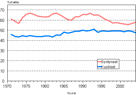 Elävänä syntyneet ja kuolleet 1971 - 2004