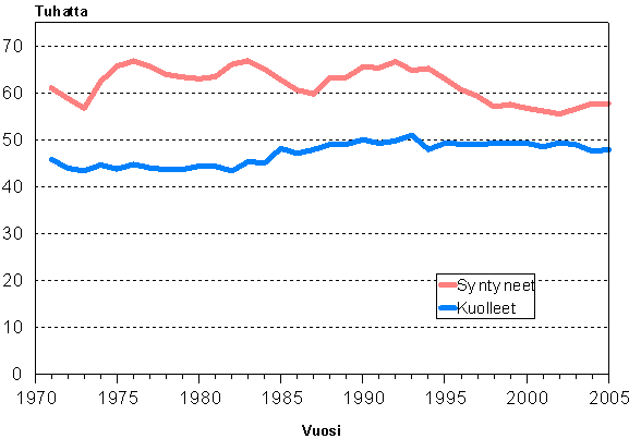 Elävänä syntyneet ja kuolleet 1971 - 2005