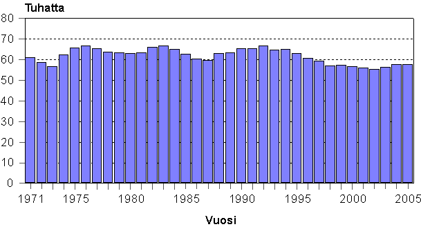 Tilastokeskuksen väestönmuutostietojen mukaan vuonna 2005 Suomessa syntyi 57 745 lasta, mikä oli 13 lasta vähemmän kuin edellisenä vuonna.