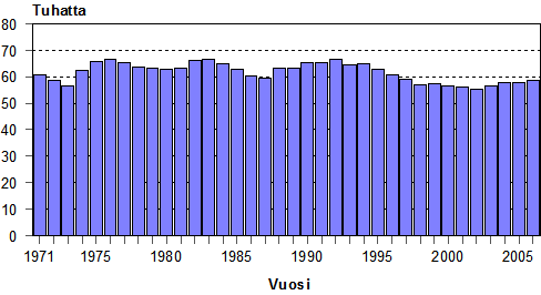 Elävänä syntyneiden määrä 1971-2006
