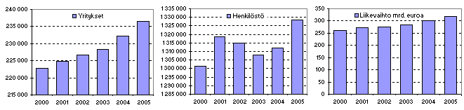 Yritysten lukumäärä, henkilöstö ja liikevaihto 2000-2005
