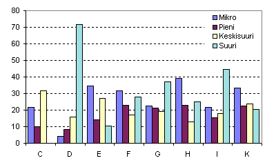 | Suuri yritys (=> 250 henkilöä | 0,2 | 32,9 | 42,7 |