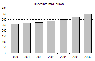 Yritysten liikevaihto oli 262 miljardia euroa vuonna 2000. Sen jälkeen kasvuvauhti oli keskimäärin kolme prosenttia vuosittain, mutta kolmena viimeisenä tarkasteluvuotena kasvu on ollut ripeämpää; 5,2 prosenttia vuonna 2004, vuonna 2005 kasvu oli 6,2 prosenttia ja 9 prosenttia vuonna 2006. Luvuissa ei ole otettu huomioon rahan arvon muutosta.