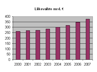Vuonna 2000 yritysten liikevaihto oli 262 miljardia euroa. Sen jälkeen kasvuvauhti oli keskimäärin kolme prosenttia vuosittain, mutta sen jälkeen kasvu on ollut ripeämpää; vuonna 2004 viisi ja puoli prosenttia, seuraavana vuonna kuusi prosenttia, vuonna 2006 yhdeksän prosenttia ja vajaat kahdeksan prosenttia vuonna 2007. Luvuissa ei ole otettu huomioon rahan arvon muutosta.