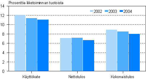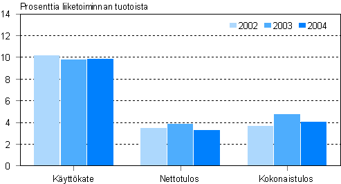 Teollisuusyritysten varsinaisen toiminnan kannattavuus on heikentynyt usean vuoden ajan. Vaikka yritysten tuotot kasvoivat 4,9 miljardia euroa vuonna 2004, jäi käyttökatetta vain pari miljoonaa euroa edellisvuotta enemmän. Tuottojen kasvu hupeni raaka-ainekustannusten ja muiden liiketoimintamenojen nousuun. Koko tehdasteollisuuden käyttökate oli 11,1 prosenttia liiketoiminnan tuotoista. Parhaimmat katteet saatiin kemian teollisuudessa, 14,6 prosenttia liiketoiminnan tuotoista.