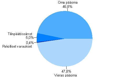 muutoksia. Oman pääoman osuus hieman supistui ja velkojen osuus