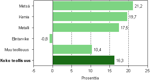 Tehdasteollisuuden liikevaihto kasvoi vuonna 2006 Tilastokeskuksen ennakkotietojen mukaan 19,7 miljardilla eurolla eli 16,3 prosentilla. Liikevaihdon kasvusta pk-yritysten osuus oli 2,1 miljardia euroa. Tehdasteollisuuden kannattavuus pysyi käyttökateprosentilla mitaten edellisvuoden tasolla. Sen sijaan nettotulos- ja kokonaistulosprosentit kasvoivat huomattavasti verrattuna vuoteen 2005.