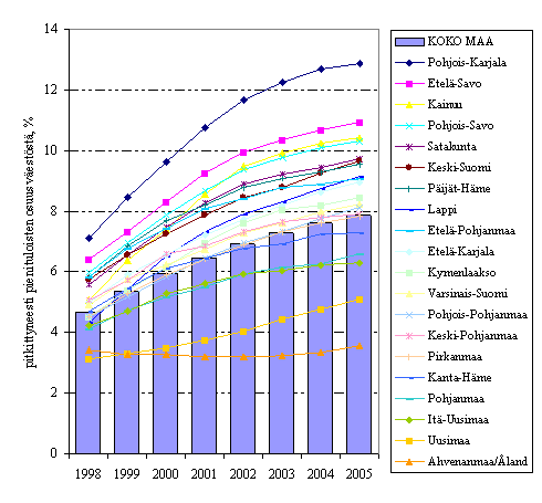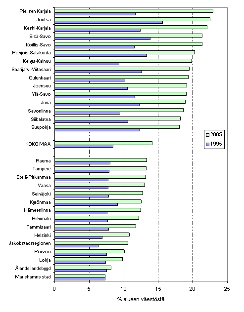 | Vuosi | 1995 | 1996 | 1997 | 1998 | 1999 | 2000 | 2001 | 2002 | 2003 | 2004 | 2005 | Muutos 1995/2005 |