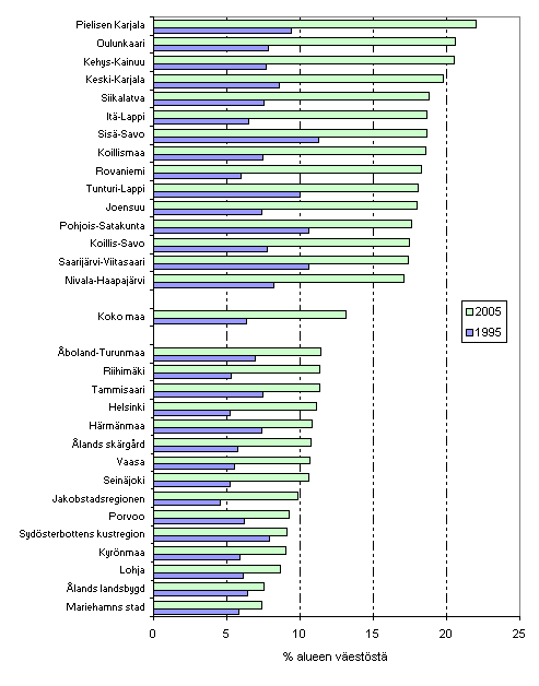 | 1995 | 2004 | 2005 | 2004-2005 | %-yksikköä | 1995-2005 | %-yksikköä | |