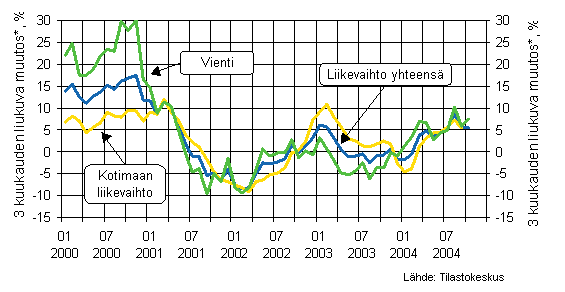 Lähde: Liiketoiminnan kuukausikuvaajat 2004, lokakuu. Tilastokeskus