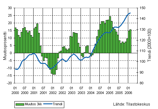 Teollisuusyritysten liikevaihto oli Tilastokeskuksen mukaan joulukuun 2005 ja helmikuun 2006 välisenä aikana runsaat 6 prosenttia suurempi kuin vastaavalla ajanjaksolla vuotta aiemmin. Vientiliikevaihto kasvoi 5 prosenttia ja kotimaan myynti 7 prosenttia vuotta aiemmasta.