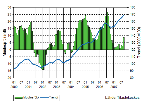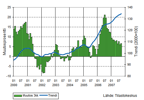 Teollisuuden liikevaihto oli Tilastokeskuksen mukaan heinä-syyskuussa 6,6 prosenttia suurempi kuin vastaavalla ajanjaksolla vuotta aiemmin. Vientiliikevaihto kasvoi 7,1 prosenttia ja kotimaan myynti 5,7 prosenttia.