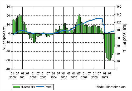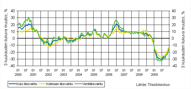 Teollisuuden liikevaihto oli Tilastokeskuksen mukaan vuoden 2009 loka-joulukuussa 15,3 prosenttia pienempi kuin vastaavalla ajanjaksolla vuotta aiemmin. Kotimaan myynti supistui 13,3 prosenttia ja vientiliikevaihto 16,8 prosenttia vuodentakaisesta.
