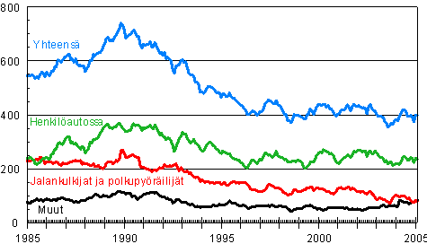 Tieliikenteessä kuolleet 1/1985 - 2/2005