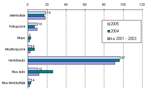 Tieliikenteessä kuolleet tienkäyttäjäryhmän mukaan tammi-toukokuussa 2005