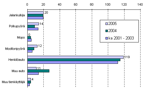 Tieliikenteessä kuolleet tienkäyttäjäryhmän mukaan tammi-kesäkuussa 2005