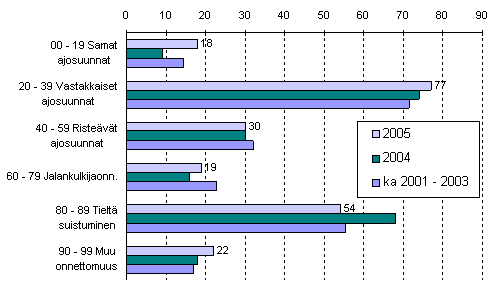 Tieliikenteessä kuolleet onnettomuustyypin mukaan tammi-heinäkuussa 2005