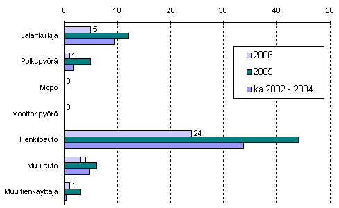 Tieliikenteessä kuolleet tienkäyttäjäryhmän mukaan tammi-helmikuussa 2006