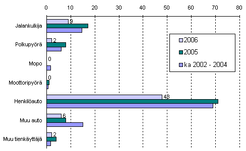 Kuolleiden ja loukkaantuneiden määriä on verrattu vuoden 2005 tammi-huhtikuun vastaaviin ennakkotietoihin. Luvut perustuvat poliisin Tilastokeskukselle toimittamiin onnettomuustietoihin.