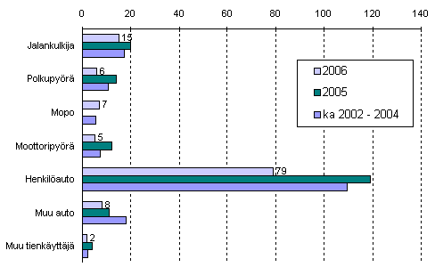 Tieliikenteessä kuolleet tienkäyttäjäryhmän mukaan tammi-kesäkuussa 2006