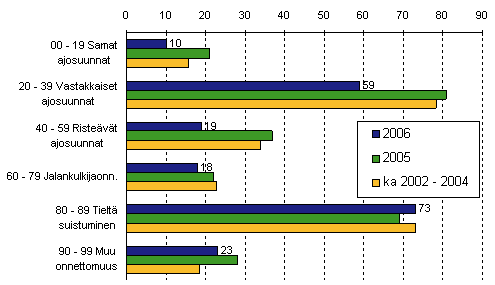 Tieliikenteessä kuolleet onnettomuustyypin mukaan tammi-elokuussa 2006