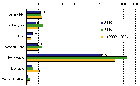 Tieliikenteessä kuolleet tienkäyttäjäryhmän mukaan tammi-elokuussa 2006
