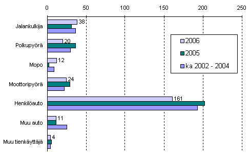 Tieliikenteessä kuolleet tienkäyttäjäryhmän mukaan tammi-lokakuussa 2006