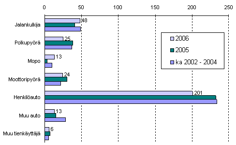 Tieliikenteessä kuolleet tienkäyttäjäryhmän mukaan tammi-joulukuussa 2006