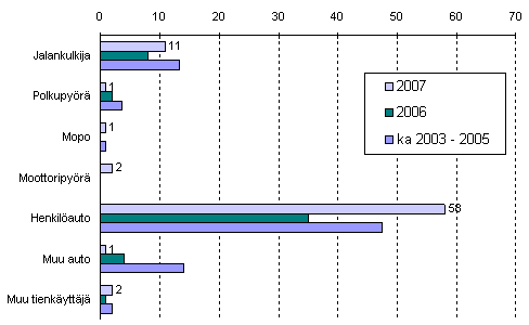 Tieliikenteessä kuolleet tienkäyttäjäryhmän mukaan tammi-maaliskuussa 2007